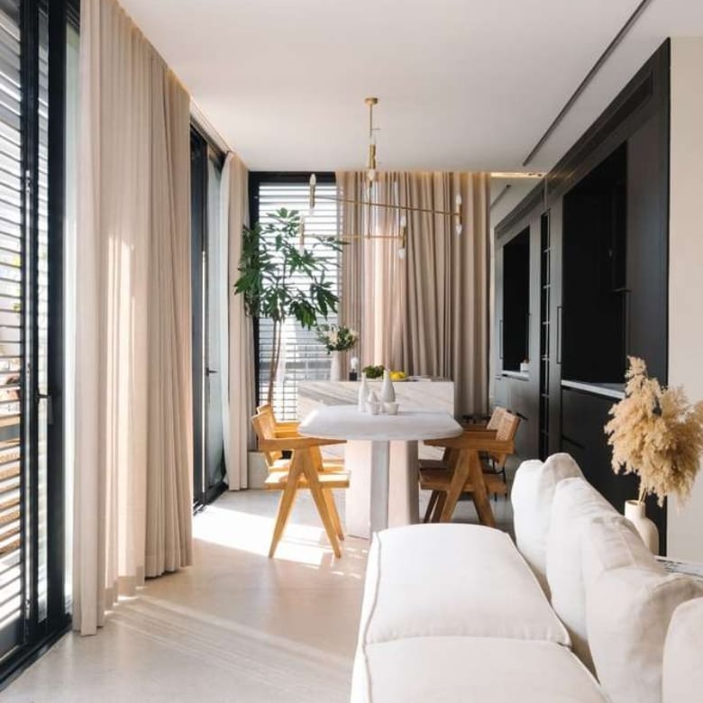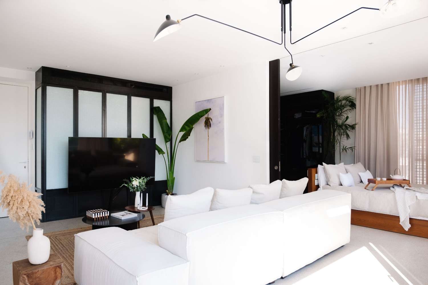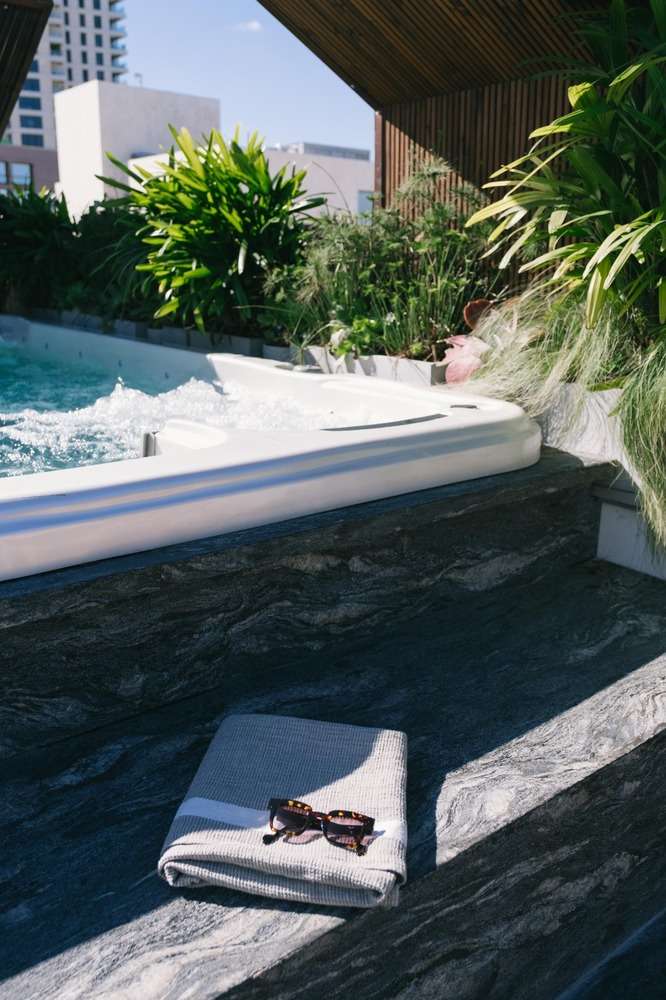 בפרויקט אקלקטי מהיפים בעיר בלב תל אביב | פנטהאוז מעוצב אדריכל ומרוהט | רצפת טראצו, מזגני וי אר אף, נגרות מיוחדת | קומה 3 ואחרונה בנוי 98 מר | 30 מרפסת מהסלון | גג פרטי 65 מ״ר עם ג׳קוזי
