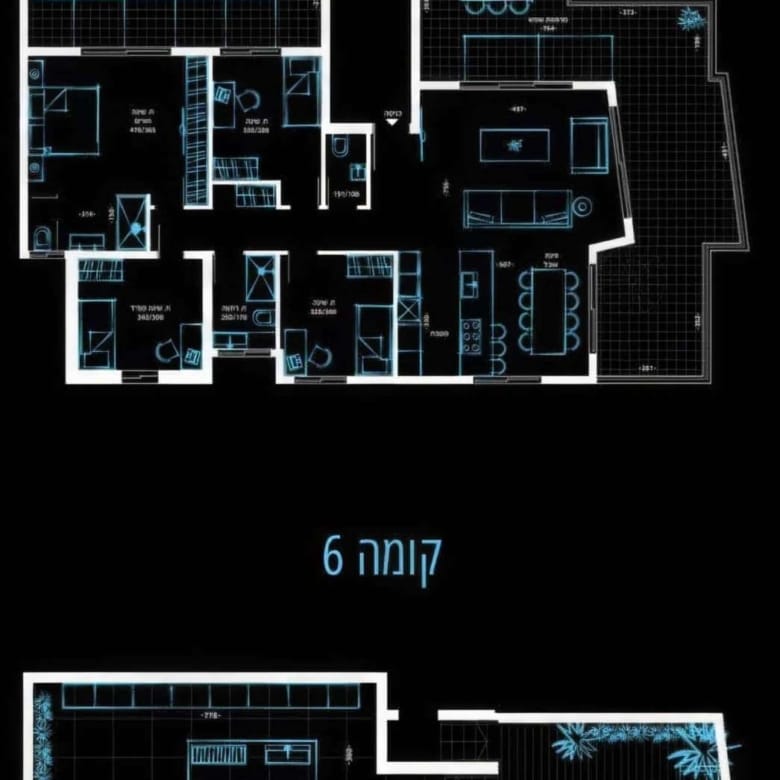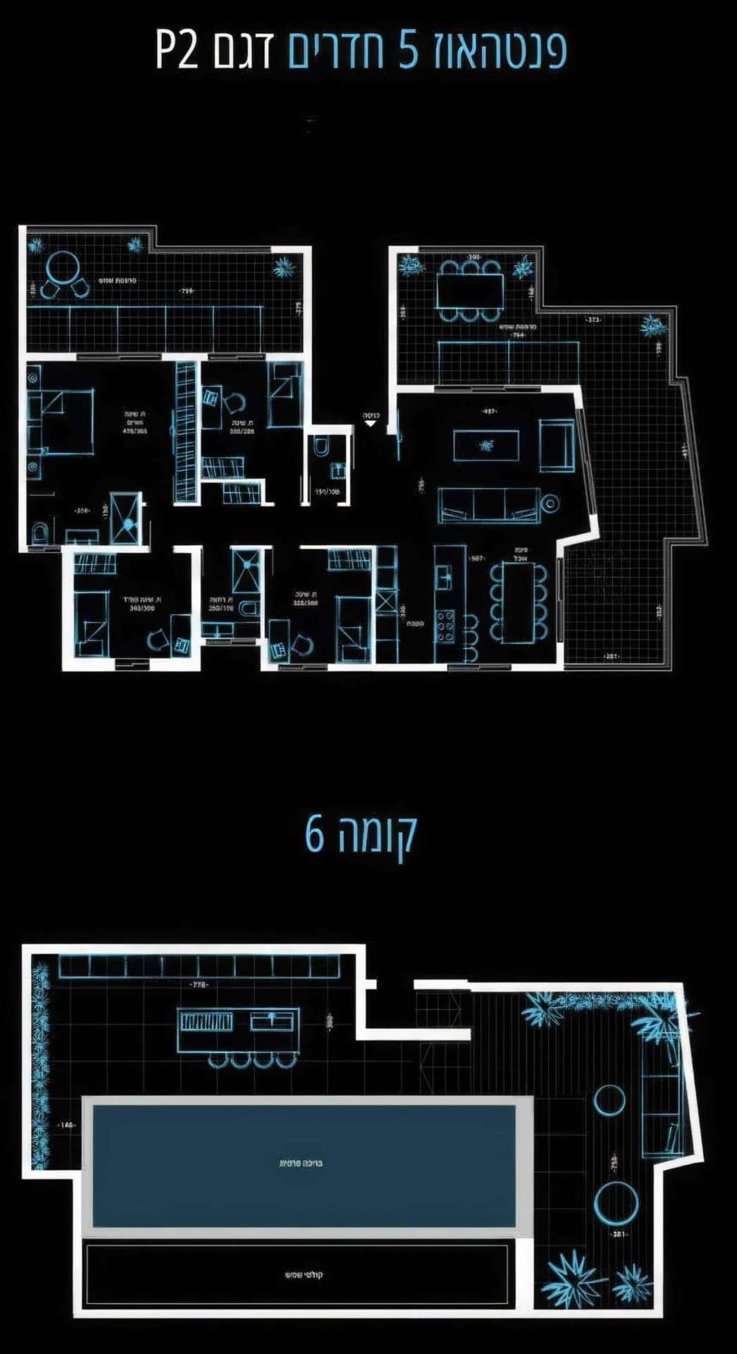 קומה 5-6 – פנטהאוז | 135 מ”ר | 70 מ”ר מרפסות | 135 מ “ר גג | בריכה הידראולית | לובי פרטי | 2 חניות | מעלית