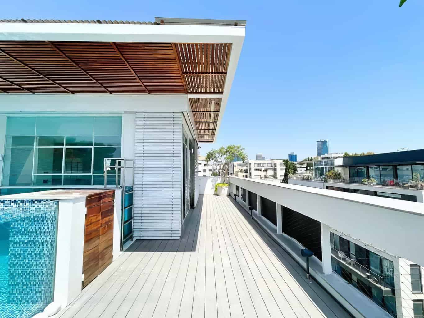 דירת פנטהאוז ברח’ שיינקין | 155 מ”ר | שתי קומות | גג 114 מטר עם בריכה מזכוכית | כל מוצרי החשמל הנדרשים מבית Miele | וילונות הן החשכה והן דקורטיביים | טלוויזיות בכל הבית | מיטה זוגית כולל מזרן בחדר שינה מאסטר | 2 חניות